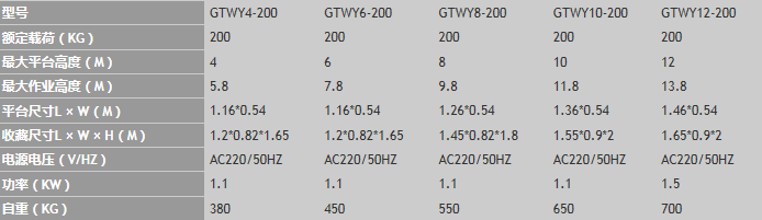 2. 該系列最大平臺高度:4M、6M、8M、10M、12M